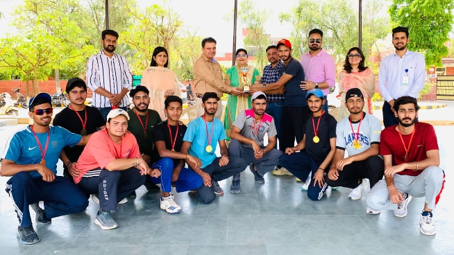 सिरसा, 11 मई 2023.: जेसीडी विद्यापीठ ने एक शानदार इंटर-कॉलेज क्रिकेट टूर्नामेंट का आयोजन करवाया , जिसमें जेसीडी विद्यापीठ के सभी कॉलेजों की टीमों ने अत्यधिक उत्साह के साथ भाग लिया। टूर्नामेंट में कुछ रोमांचक क्षण और कड़ी प्रतिस्पर्धा देखने को मिली, जिसने दर्शकों को रोमांचित कर दिया।इस कार्यक्रम में मुख्य अतिथि के रूप में जेसीडी विद्यापीठ के महानिदेशक व अंतरराष्ट्रीय ख्याति प्राप्त वैज्ञानिक डॉ. कुलदीप सिंह ढींडसा व विशिष्ट अतिथि के रूप में कुलसचिव डॉ. सुधांशु गुप्ता पहुंचे इसके अलावा विद्यापीठ के कॉलेजों के प्राचार्यगण डॉ. जयप्रकाश, डॉ, शिखा गोयल, डॉ.अनुपमा सेतिया, डॉ. हरलीन कौर उपस्थित रहे। टूर्नामेंट के संयोजक और जेसीडी विद्यापीठ के स्पोर्ट्स ऑफिसर डॉ. अमरीक गिल ने कार्यक्रम के आयोजन में महत्वपूर्ण भूमिका निभाई।